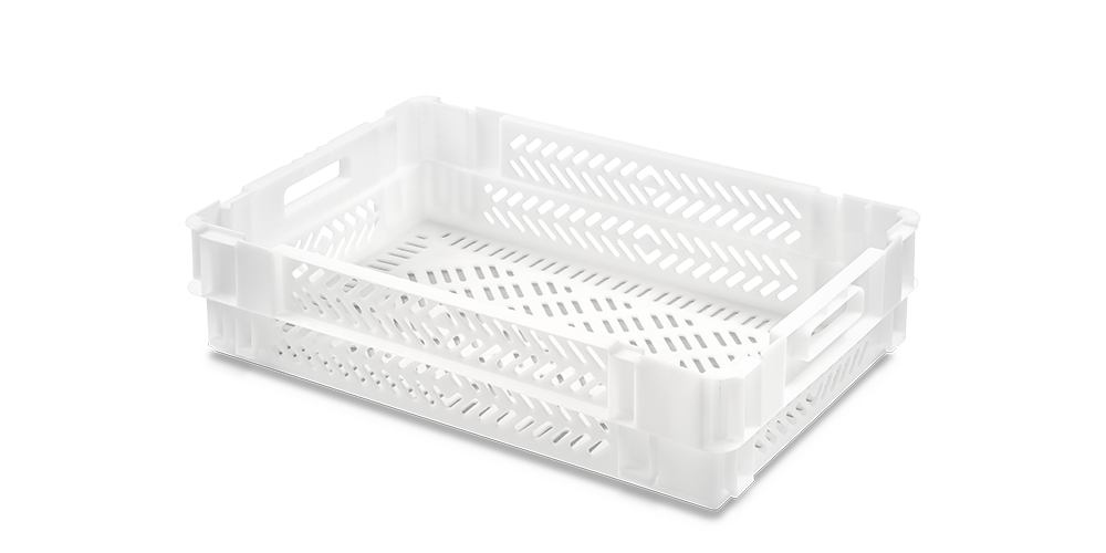 Équipé d’un fond et de parois ajourés, il offre une excellente ventilation tout en permettant le stockage en pile.