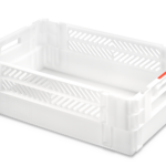 Découvrez notre bac emboîtable et gerbable, conçu pour répondre à vos besoins de stockage. Ce bac combine un fond plein pour assurer la stabilité et la protection de vos produits avec des parois ajourées sur la moitié de leur hauteur, permettant une ventilation optimale.
