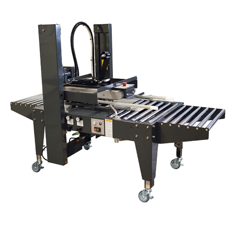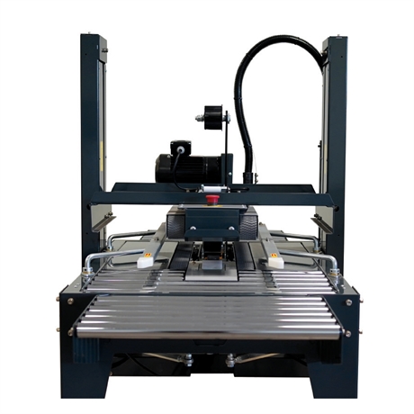 polyvalente et pratique. Elle est également équipée d’un système de dépose de ruban adhésif supérieure et inférieure, vous offrant ainsi une solution complète. Bien que la scotcheuse puisse être utilisée manuellement pour introduire et plier les rabats, elle peut également être équipée de convoyeurs à rouleaux libres amont et aval pour plus de commodité. Si vous recherchez une sécurité supplémentaire, une cage de sécurité est également disponible en option.