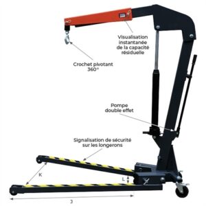• Bras télescopique réglable : Offre une grande flexibilité pour s’adapter à différentes hauteurs et profondeurs de levage.
