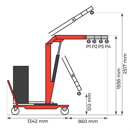 Cette grue possède une capacité de 500 kg et est équipée d’un mât sur tourelle rotative avec huit positions de blocage. Ainsi elle possède une excellente précision de positionnement. Ceci est particulièrement important pour les tâches de levage qui nécessitent une grande précision et une grande stabilité.