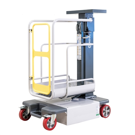 Compacte, polyvalente, elle est équipée d’un mât vertical. Cette nacelle est spécialement conçue pour les espaces restreints grâce à son faible rayon de braquage. Ses dimensions hors tout sont de 1200 mm (long) x 750 mm (large) x 1640 mm (hauteur). Elle est également équipée de roues en polyuréthane non marquant pour une utilisation en intérieur qui n’endommage pas le sol.
