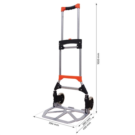 Entièrement pliable et télescopique, il est parfaitement adapté aux manipulations. Avec un poids plume de 3,6 kg, il est facilement transportable dans le coffre d’une voiture ou d’un utilitaire. Ultra compact grâce à son cadre, sa poignée et ses roues rabattables, il se range en prenant très peu d’espace. Une fois replié, il mesure seulement 770 x 390 mm.