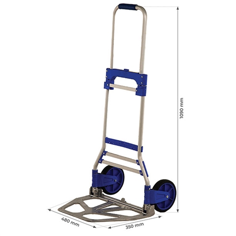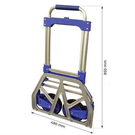 Très compact grâce à sa bavette et son cadre repliant, il peut être déplacé très facilement. Par exemple, il se glissera parfaitement dans le coffre d’une voiture ou d’un utilitaire. Très léger avec seulement 4.5 kg, il est extrêmement maniable. Afin de faciliter encore plus les manipulations, ce diable peut être déplacé sur ses roues même repliées. Lorsqu’il est plié, ses mesures sont seulement de h.830 x l.430 mm.
