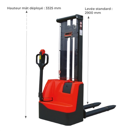 Avec sa technologie, ce gerbeur électrique peseur améliore le confort des utilisateurs et aide à gagner en rapidité et en performance. Ce gerbeur électrique permet également de prévenir les troubles musculo-squelettiques (TMS). La capacité de ce gerbeur électrique est de 1000 kilos. Il peut lever et atteindre des charges jusqu’à 2900 mm de hauteur.