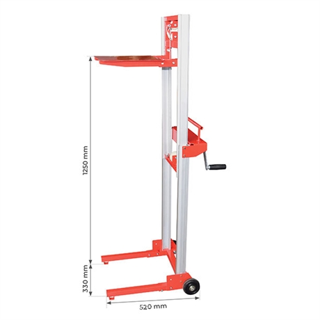 Les dimensions de son plateau sont de 380 x 300 mm ce qui permet de déplacer de nombreuses charges ou colis. Sa capacité de charge totale est de 80 kg, ce qui aura comme avantage de soulager l’opérateur. Il possède une hauteur d’élévation de 1250 mm et permet d’attraper diverses charges. Ce type de gerbeur ne nécessite pas de CACES.